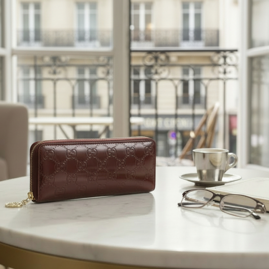 Gucci Guccissima Zippy Wallet · Bordeaux Metallic